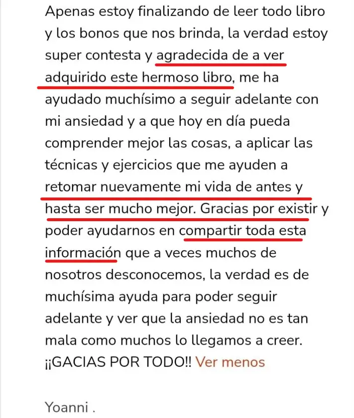 - Eliminar completamente los Síntomas Físicos de la Ansiedad y vivir una vida sin miedos, preocupaciones ni limitaciones